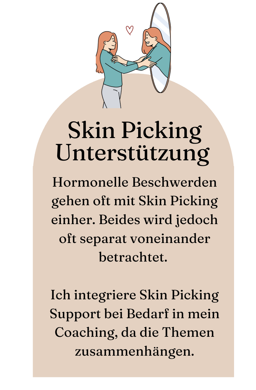 In meinem Coaching werfe ich bei Bedarf gezielt einen liebevollen Blick auf dein Hautverhalten und unterstütze dich dabei, neue, selbstfürsorgliche Gewohnheiten zu entwickeln. Ich zeige dir, wie du in hormonellen Umstellungsphasen nicht mehr gegen dich arbeitest.